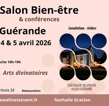 Nous organisons 3 à 4 salons par an. Thérapeutes, coachs sportifs, créateurs, artistes... vous êtes les bienvenus pour y participer.